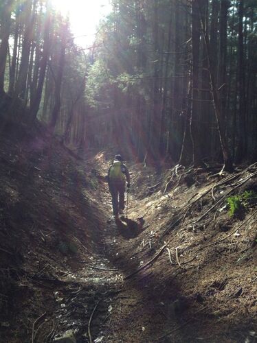 前日の雪で、軽く積雪がありそうと考えつつも、 しばらく動いていなかったので、予定通り九鬼山に向かう。 登山口付近は、雪も解けていて、雪解けがキラキラ光って良い気分。 しばらくの登ると、昨日の雪が・・・。キラキラできれいなのだが、寒がりの同行者…